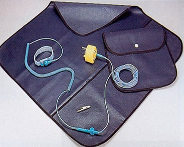 Field WorkField work is perhaps the most risky situation of handling ESD sensitive devices because of the uncontrolled nature of the environment. It is also often the most neglected aspect of ESD damage prevention. The situation is risky as there are usually many potential ESD sources in the modern environment. A good awareness of ESD issues and practice is required if the risk from these is to be reduced with the minimum of portable equipment. All field work must maintain the same standards and requirements specified for permanent EPAs in terms of training, material quality, labelling, packaging and personal responsibilities. A field service kit (photo courtesey of Static Safe Environments Ltd. ) Any secondary non-ESD packaging is removed and discarded a safe distance from the working area. The operator, any temporary EPA work surface used, and the equipment must be electrically bonded together. Where practical they are grounded, usually to mains earth. The operator is grounded via a wrist strap. A new pc board should not be removed from its ESD protective packaging until ready for insertion in to the equipment. Any faulty circuit boards required for failure analysis must be packaged in shielding packaging if further ESD damage is to be avoided. |